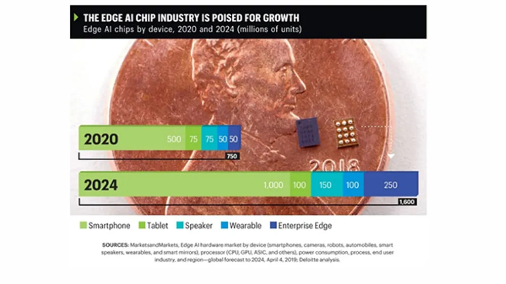 Duncan Stewart is director of research at Deloitte for TMT (Technology, Media and Telecommunications). At Deloitte’s TMT Predictions 2020, Duncan predicted that AI chips at the edge arepoised for explosive growth. In 2020 a staggering 750 million AI edge chips will be sold and that will more than double to 1.6 billion by 2024. More than 60% of these — a billion chips —will be embedded in our smartphones making them even more intelligent.